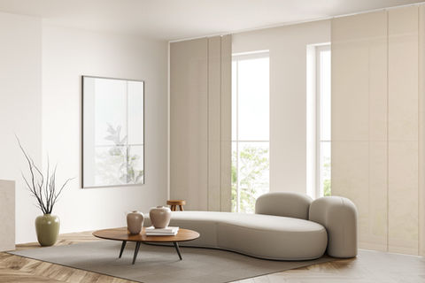 Estor cuya recogida se realiza a través de pliegues sin varillas. Accionado por un sistema de freno y cordón, proporciona una caída natural de la tela.